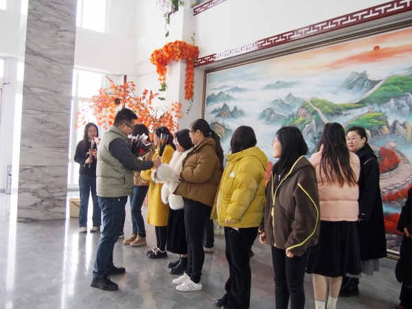 山东沐鸣2控股集团党支部书记刘子豪代表党支部与工会为集团女神们送去节日祝福与暖心礼物,并祝福各位女神们,做一朵自由生长的花,勇敢而细腻,温柔又有力!